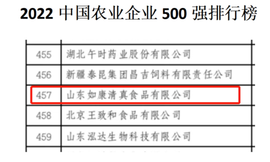 近日,农民日报社发起2022中国农业企业500强评价活动,经信息汇集、严格审核、专家评议等程序,形成了《2022中国农业企业500强》。其中,山东如康清真食品有限公司上榜。